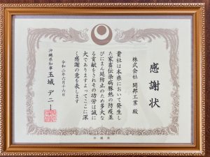 この度開邦工業は、沖縄県より家畜伝染病豚熱における