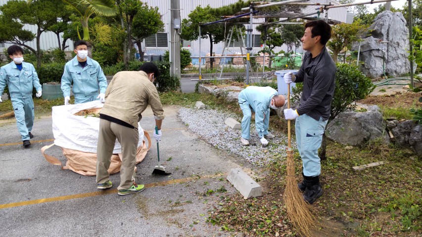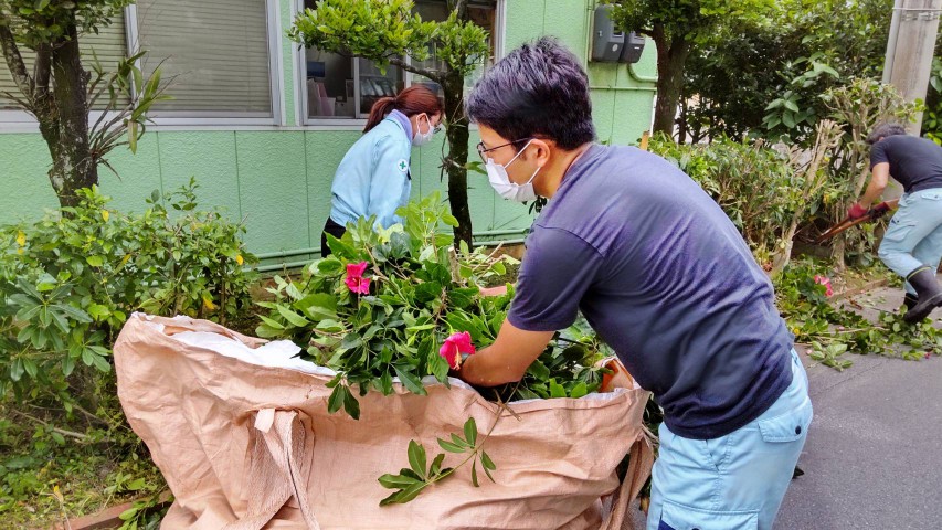 環境整備では、本社内の草刈り・剪定作業を行いました。