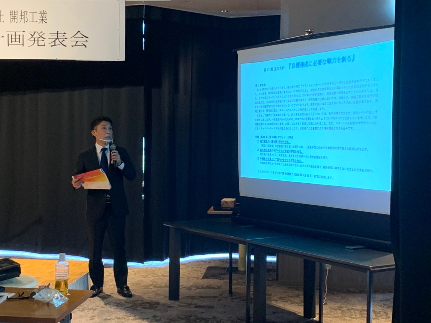 発表会では、代表取締役社長の 玉寄 将 から、第47期経営計画ビジョン及び、中期計画