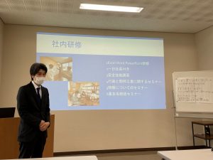 などを、指導社員、上司、社長の前で報告します。
