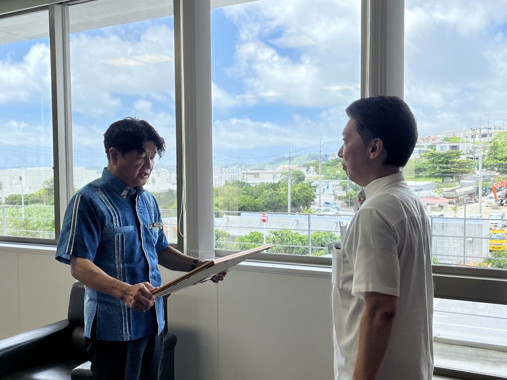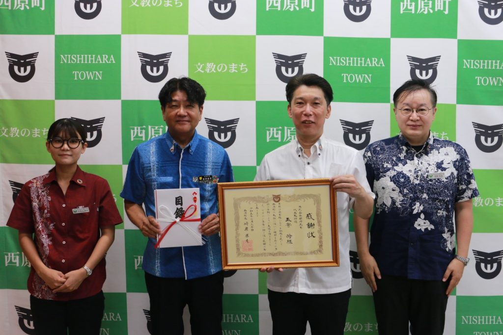 2023年6月30日西原町役場内にて、崎原町長より感謝状を頂戴いたしました。