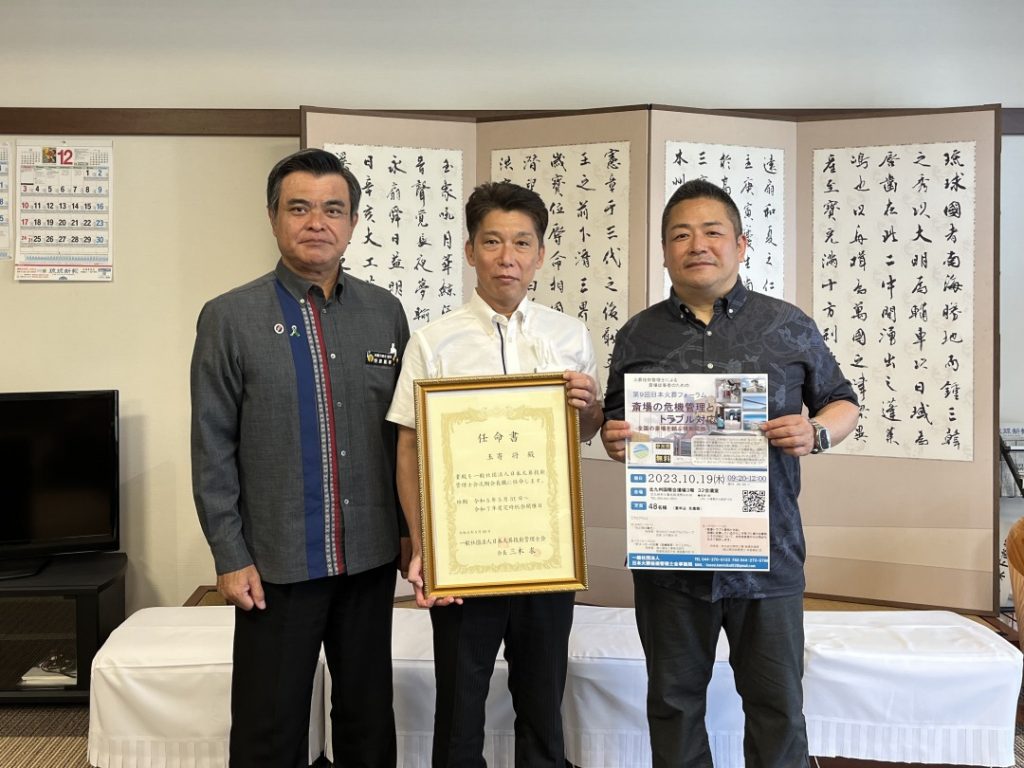 ※左から、那覇市野原義孝議長、(一社)日本火葬技術管理士会玉寄会長、同築地副会長