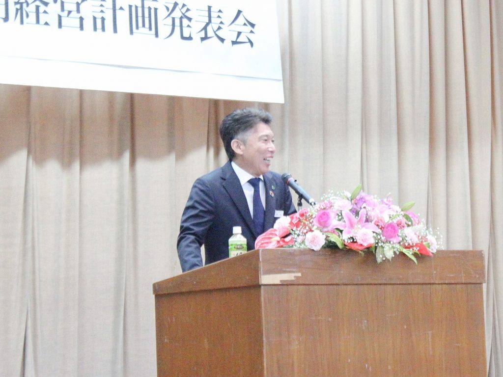 《代表取締役玉寄から、厳しくも明るい来期の方針発表》