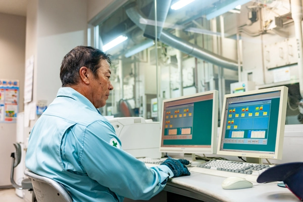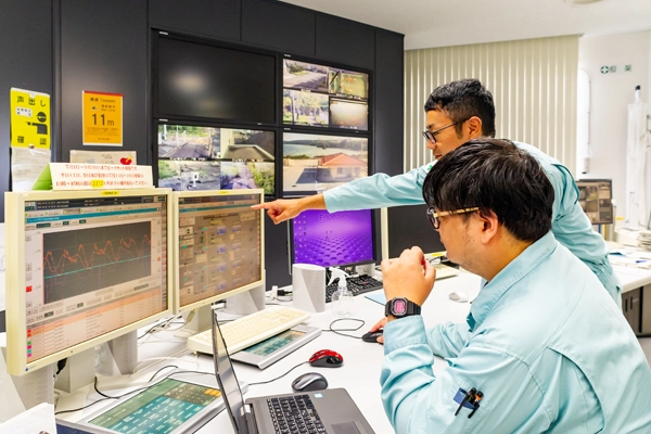 生活になくてはならないインフラである浄水施設。その当たり前の日常を守ることが使命です。水質基準を満たした水を提供するため、24時間体制でモニタリングすることはもちろん、場内の点検や採取水の有無など、通常時から負担の少ない運転で安定した水を供給できるように努めています。