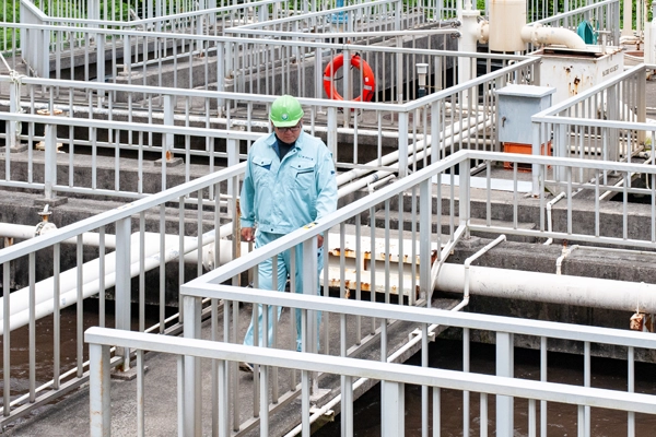 私たちは、沖縄県にある米軍基地内の下水処理施設を、主に沖縄本島南部の浄化槽の管理も担っています。小規模の合併浄化槽の維持管理も行い、点検を通して、水質基準を満たした水になるまで浄化して放流します。限りある資源を守るために、徹底した運転管理を怠りません。