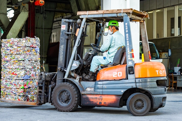 持続可能な社会のため、有効的な資源の活用が大切になってきています。リサイクル施設では資源化物であるペットボトル、瓶、カン、紙、金属、木材等を選別し、圧縮梱包した後、リサイクル原料として出荷。資源を有効活用し、住み良い環境創りを通して暮らしを支えていきます。